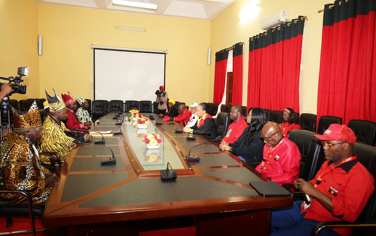 Jornal ÉME – Huambo – 23.11.2025 – A Vice-Presidente do MPLA, Mara Quiosa, concedeu, neste sábado (22), na cidade do Huambo, audiências aos Reis Tradicionais da província do Huambo, com os quais debateu as preocupações que afectam as comunidades.